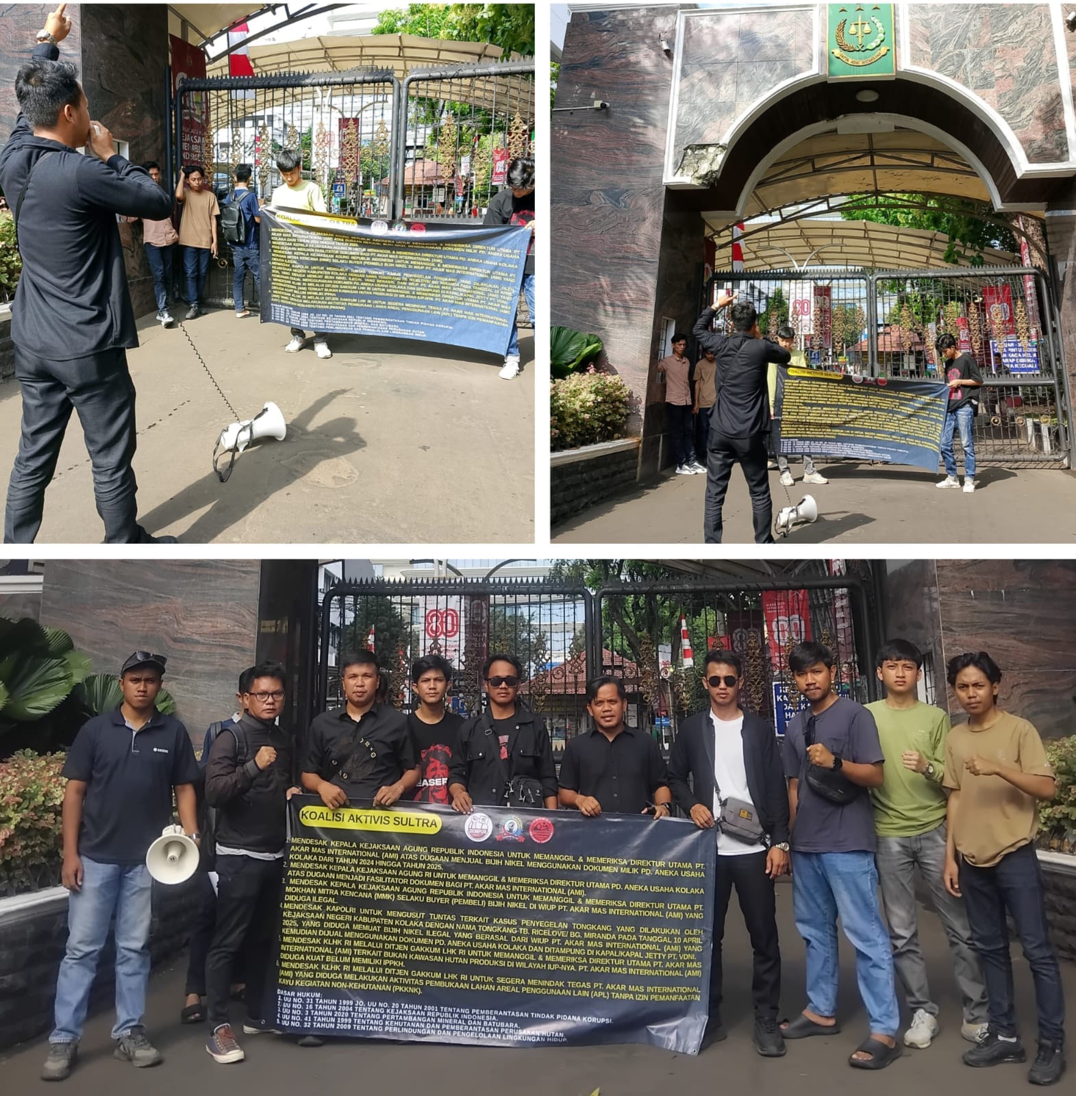 Jakarta – Lumbungsuarainsonesia.com Koalisi Aktivis Sultra menggelar aksi unjuk rasa menyoroti dugaan praktik pertambangan ilegal di Kecamatan Pomalaa, Kabupaten Kolaka, Sulawesi Tenggara. Dalam orasinya, massa aksi menyampaikan enam poin tuntutan yang ditujukan kepada Kejaksaan Agung Republik Indonesia, Kepolisian RI, serta Kementerian Lingkungan Hidup RI.
