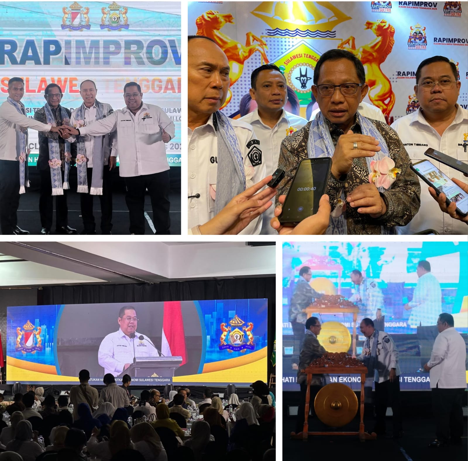 Acara pembukaan ditandai dengan simbol kebersamaan antara Mendagri Tito Karnavian dan pengurus KADIN Sultra, sebagai wujud sinergi pemerintah pusat, daerah, dan dunia usaha.