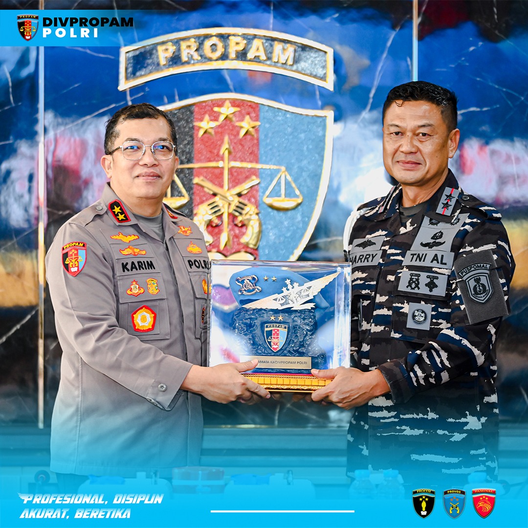 Jakarta/ Lumbungsuaraindonesia.com  Divisi Profesi dan Pengamanan (Divpropam) Polri menerima kunjungan silaturahmi dari Komandan Pusat Polisi Militer Angkatan Laut (Danpuspomal) Mayjen TNI (Mar) Harry Indarto, S.E., M.M. beserta rombongan, dalam suasana penuh keakraban dan kebersamaan.